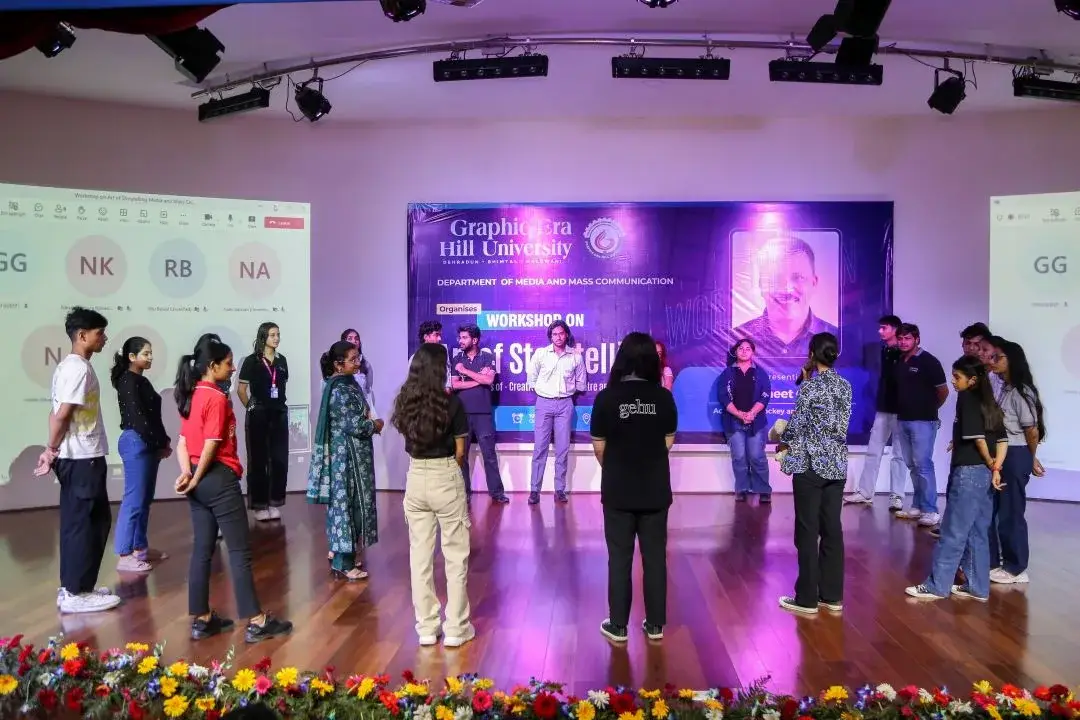 The Department of Media and Mass Communication at Graphic Era Hill University hosted an exhilarating three-day workshop dedicated to the “Art of Storytelling.” The workshop commenced with a captivating first day under the expert guidance of Mr. Navneet Gairola—an esteemed actor, radio jockey, and educator. Participants were immersed in the nuances and power of storytelling through dynamic theater activities and insightful discussions, further enriched by Dr. Ankita Uniyal, Assistant Professor of MMC, who shared invaluable knowledge on storytelling techniques and elements. Day two was a whirlwind of spine-tingling thrillers and laugh-out-loud comedies, where attendees poured their hearts into captivating stories, blending personal experiences with creative flair. The final day turned into a magical blend of fun and learning, featuring delightful student performances and an exploration of the origins of stories and films by keynote speaker Mr. Sandeep Bhatt. Congratulations to our storytelling competition winners: Aditya Tiwari (BJMC 3rd), Kanishka Uniyal (Doon University), and Monika Patwal (BJMC 5th Sem). This workshop was an unforgettable journey into the heart of storytelling, proving that in the world of mass media, creativity knows no bounds.